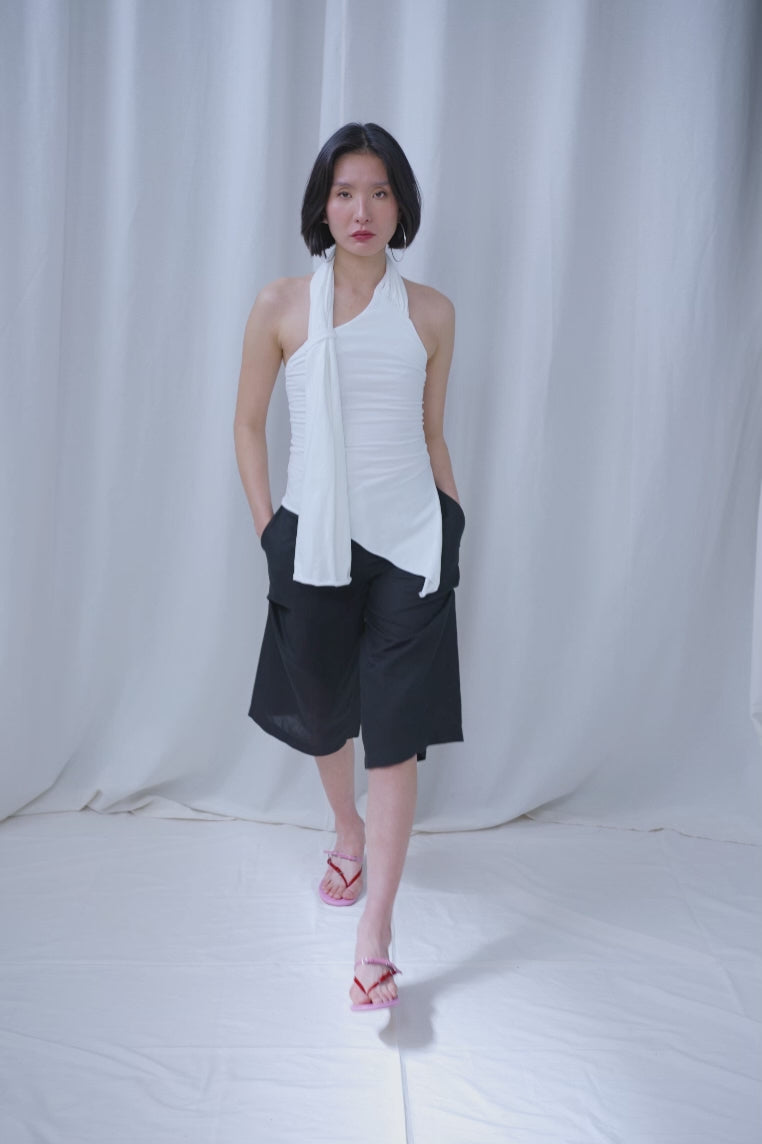 Top con cuello halter con pañuelo en punto camiseta blanco